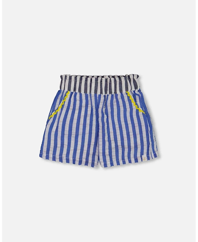 Deux par Toddler Girls Seersucker Short Blue And White Striped - Toddler|Child