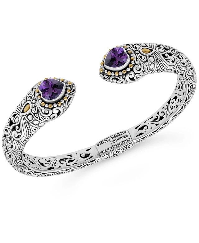 Devata Amethyst & Bali Lovina Cuff Bracelet in Sterling Silver and 18K Gold