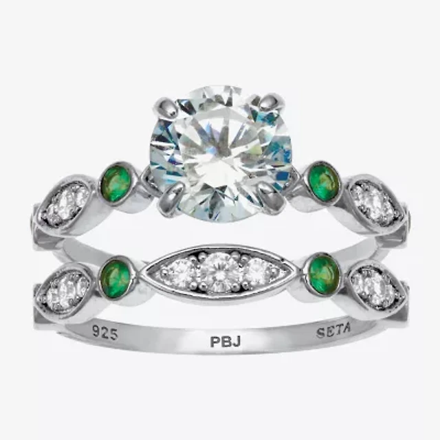 DiamonArt® Womens 2 CT. T.W. White Cubic Zirconia Platinum Over Silver Square Bridal Set
