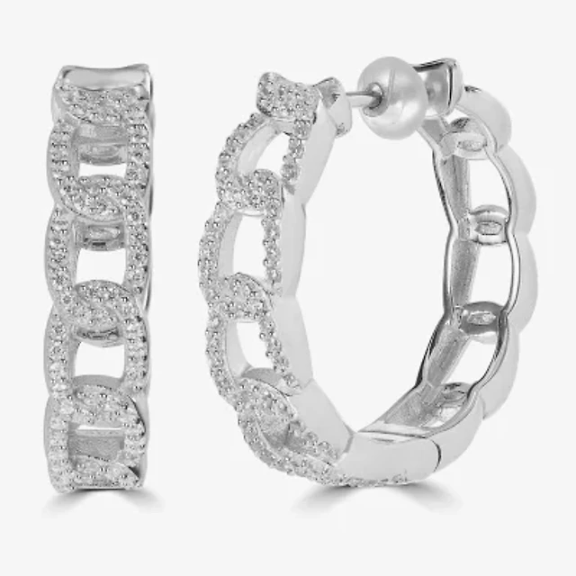 Womens Cubic Zirconia Sterling Silver 27.9mm Hoop Earrings