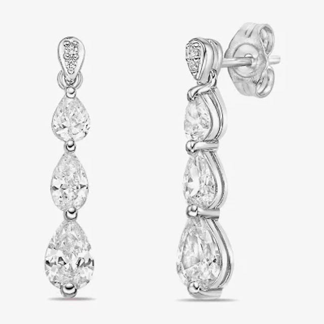 Womens Cubic Zirconia Sterling Silver Drop Earrings