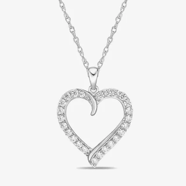 Womens White Cubic Zirconia Sterling Silver Heart 18 Inch Pendant Necklace