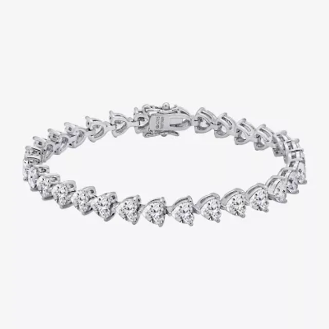 Diamonart Womens Cubic Zirconia Sterling Silver Heart 7.25 Inch Tennis Bracelet