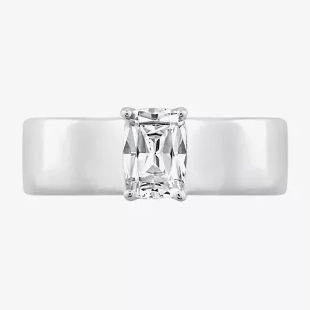 DiamonArt® Womens White Cubic Zirconia Platinum Over Silver Round Engagement Ring