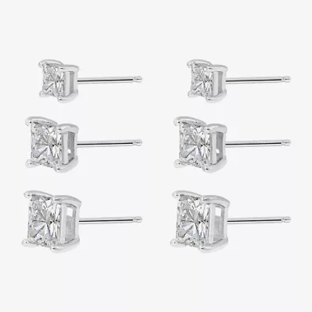 Womens 2 1/4 CT. T.W. Cubic Zirconia Sterling Silver 3 Pair Earring Set