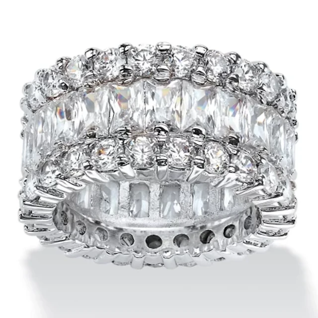 DiamonArt® 11.5MM White Cubic Zirconia Platinum Over Silver Round Band