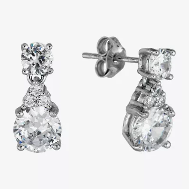Silver Treasures Womens Cubic Zirconia Sterling Silver Round Drop Earrings