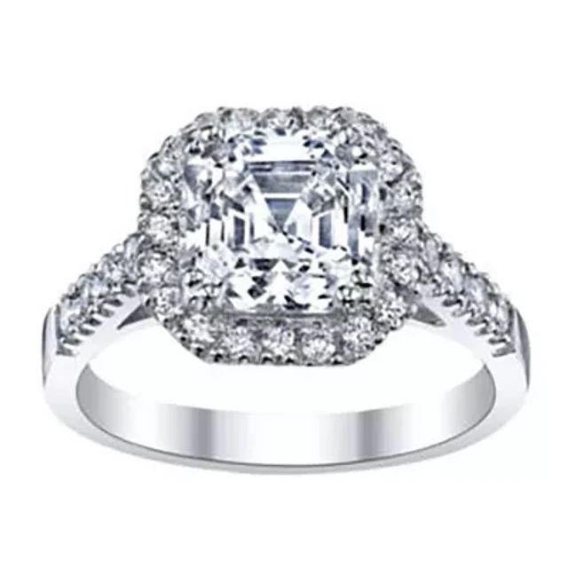 Suzy Levian Sterling Silver Asscher Cut Cubic Zirconia Center Stone Ring
