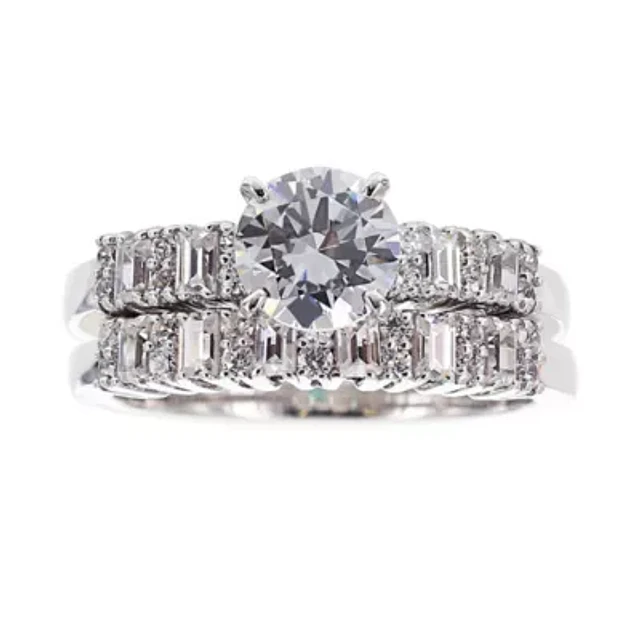 DiamonArt® Womens 3 CT. T.W. White Cubic Zirconia Sterling Silver Bridal Set