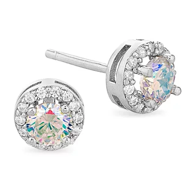 DiamonArt® Preciosa Aurora Borealis 1 1/6 CT. T.W. White Cubic Zirconia Sterling Silver 6.8mm Stud Earrings