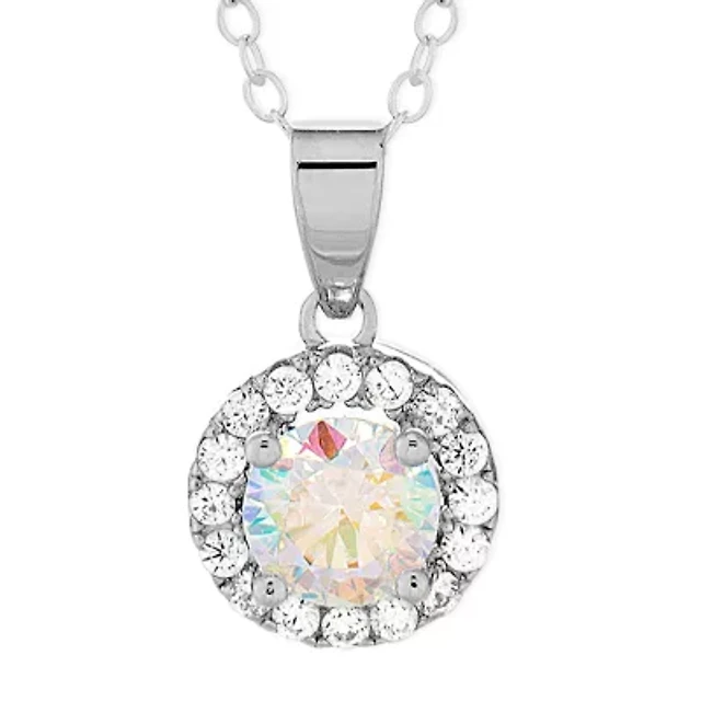 DiamonArt® Preciosa Aurora Borealis Womens 1 3/4 CT. T.W. White Cubic Zirconia Sterling Silver Halo Pendant Necklace