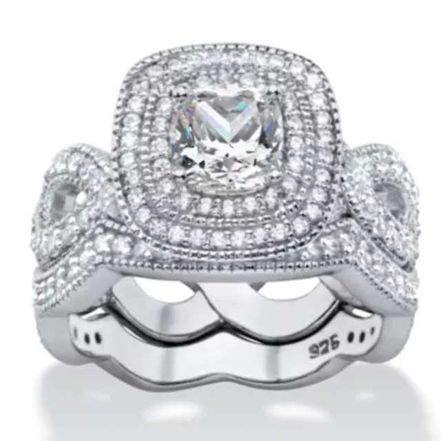 DiamonArt® Womens 2 CT. T.W. White Cubic Zirconia Platinum Over Silver Square Bridal Set