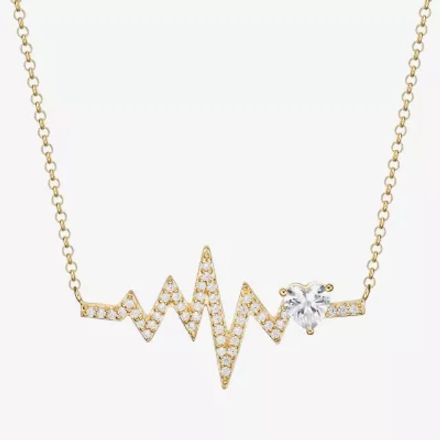 DiamonArt® Womens White Cubic Zirconia 14K Gold Over Silver Heart Pendant Necklace