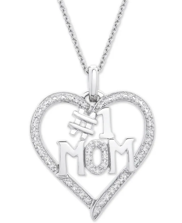 Diamond #1 Mom Heart Pendant Necklace (1/6 ct. t.w.) in Sterling Silver, 18" + 2" extender