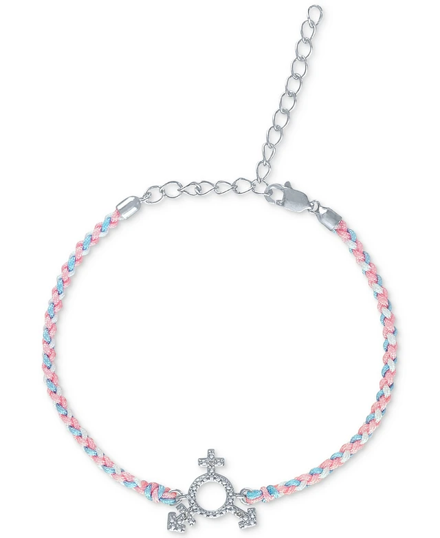 Diamond Accent Braided Cord Pride Symbol Bracelet in Sterling Silver