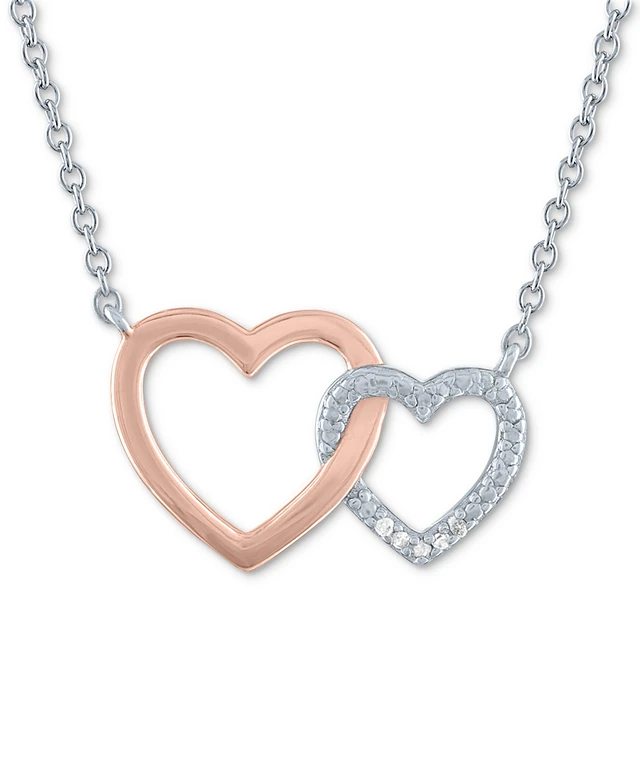 Diamond Double Heart Pendant Necklace in Sterling Silver and 14k Rose Gold (1/10 ct. t.w.)