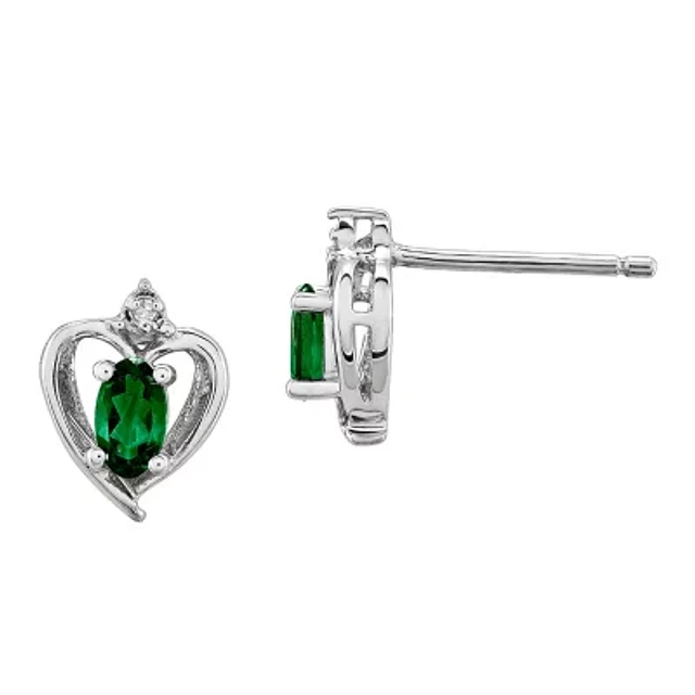 Diamond Accent Lab Created Green Emerald Sterling Silver 10mm Heart Stud Earrings