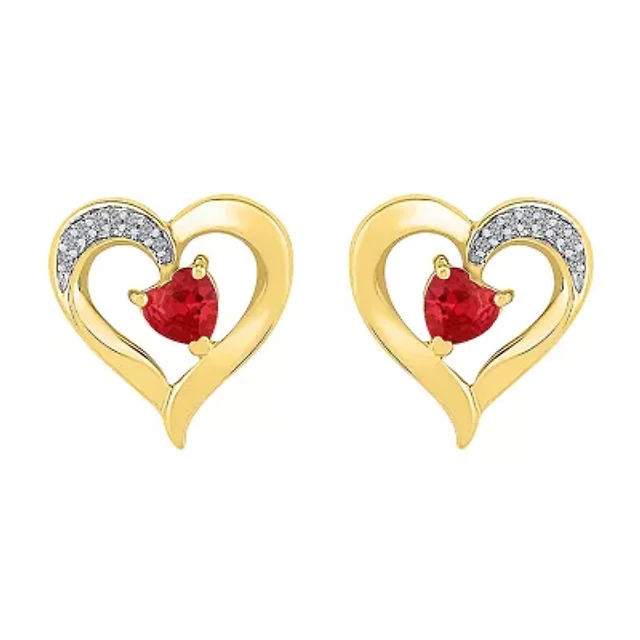 Diamond Accent Lab Created Red Ruby 10K Gold 13.5mm Heart Stud Earrings
