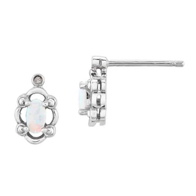 Diamond Accent Lab Created White Opal Sterling Silver 10mm Oval Stud Earrings
