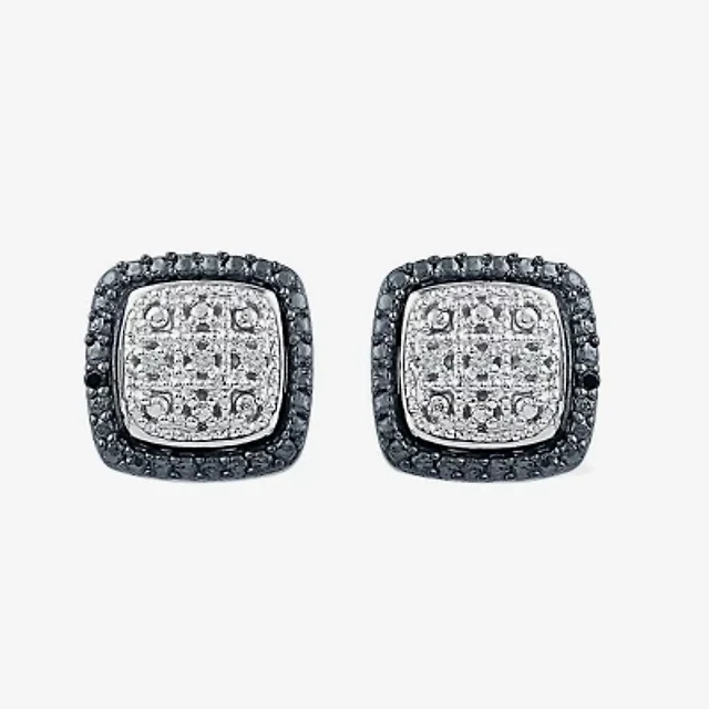 Diamond Accent Natural Black Diamond Sterling Silver 17.6mm Cushion Stud Earrings