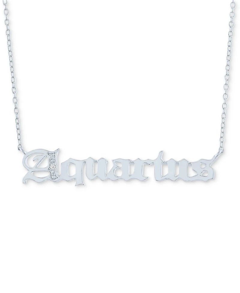Diamond Accent Zodiac Name 18" Pendant Necklace Sterling Silver or 14k Gold-Plated