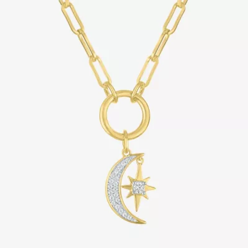 Diamond Addiction Moon Star (G-H / Si2-I1) Womens 1/10 CT. T.W. Lab Grown White Diamond 14K Gold Over Silver Moon 18 Inch Pendant Necklace