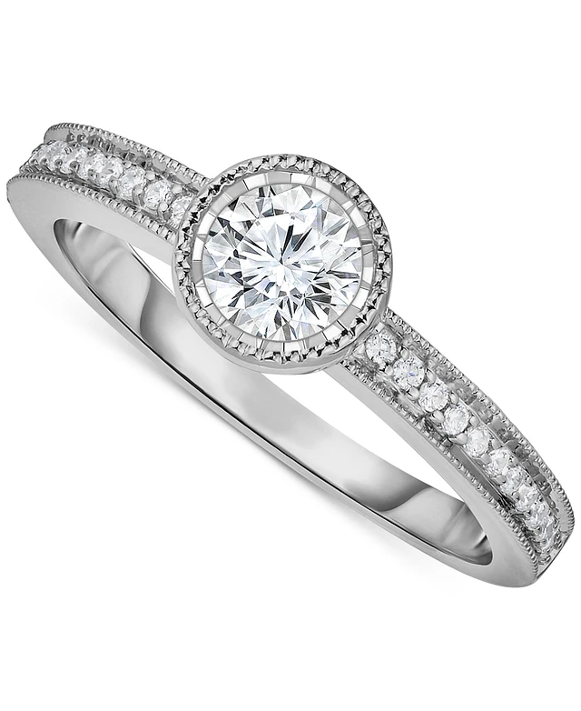 Diamond Bezel Milgrain Engagement Ring (5/8 ct. t.w.) in 14k White Gold