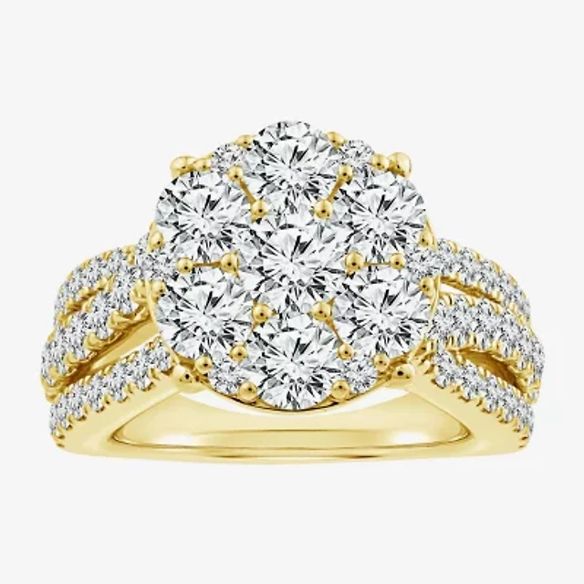 Diamond Blossom Womens 3 CT. T.W. Lab Grown White 10K or Yellow Gold Cluster Cocktail Ring