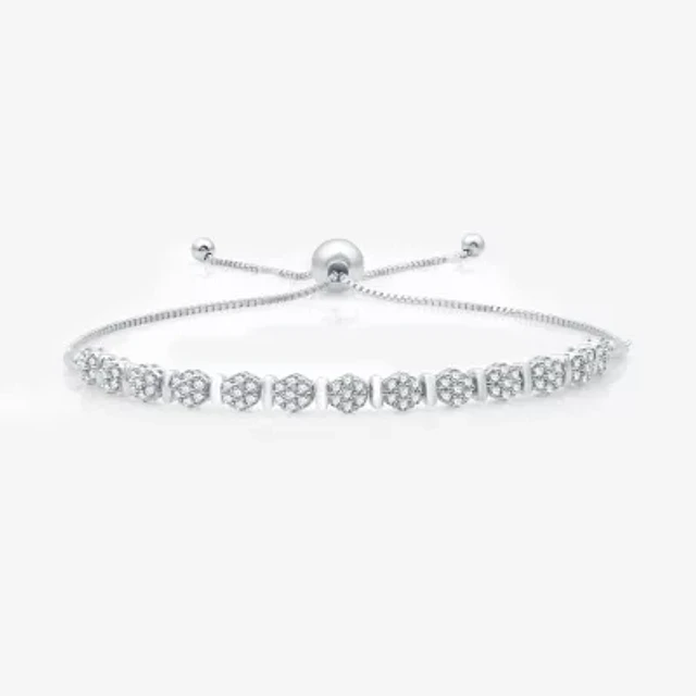 Diamond Blossom Womens 1/ CT. T.W. Natural White Diamond Sterling Silver Bolo Bracelet