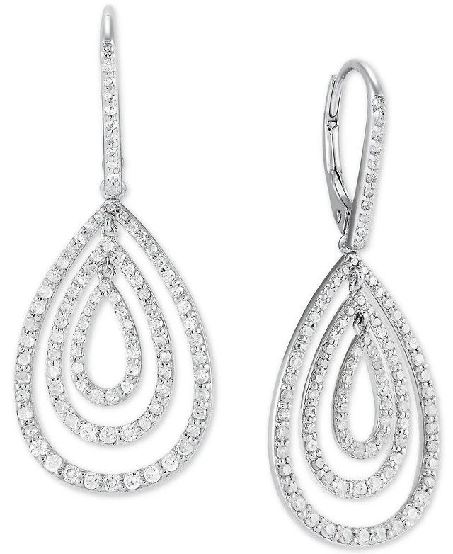 Diamond Concentric Teardrop Leverback Drop Earrings (1 ct. t.w.) in Sterling Silver