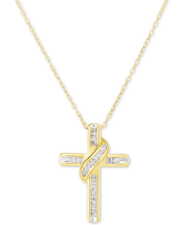 Diamond Cross 18" Pendant Necklace (1/4 ct. t.w.) in 14k Gold-Plated Sterling Silver or Sterling Silver