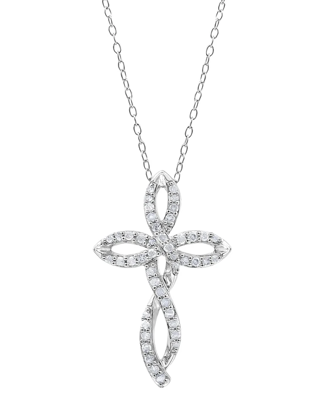 Diamond Cross Pendant Necklace (1/10 ct. t.w.) In Sterling Silver
