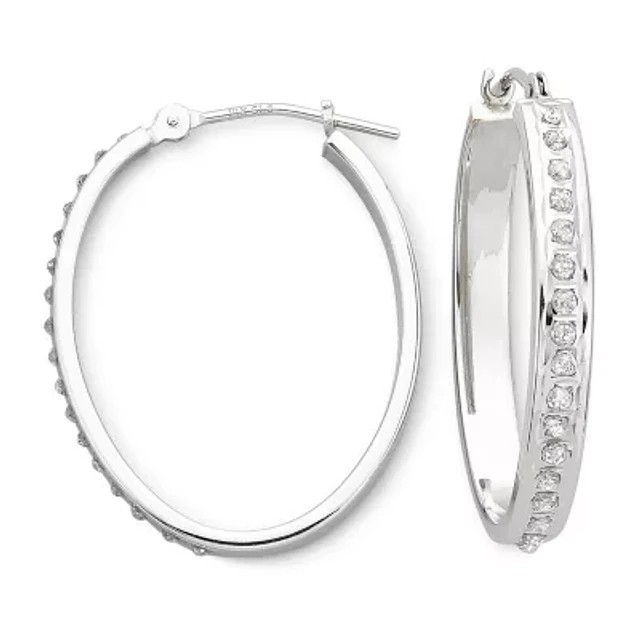 Diamond Fascination™ 14K White Gold Oval Hoop Earrings