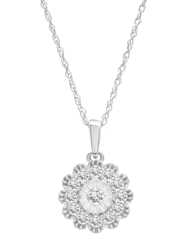Diamond Halo 18" Pendant Necklace (1/4 ct. t.w.) in 14k White Gold