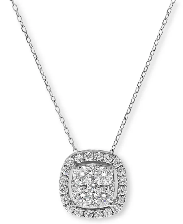 Diamond Halo Cluster Pendant Necklace (1 ct. t.w.) in 14k Gold or 14k White Gold