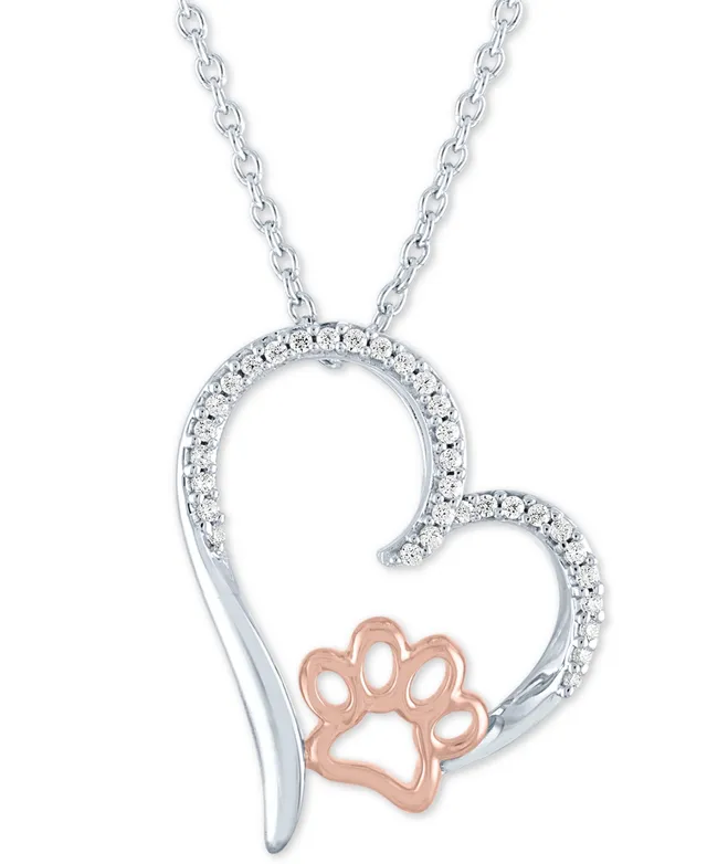 Diamond Heart & Paw Pendant Necklace (1/10 ct. t.w.) in Sterling Silver & 14k Rose Gold-Plate, 16" + 2" extender