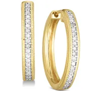 Classic hoop earrings get a dazzling update. Set in sterling silver this luxe style features a row of round-cut diamonds (1/4 ct. tw.). Approximate diameter: 7/8 inch.