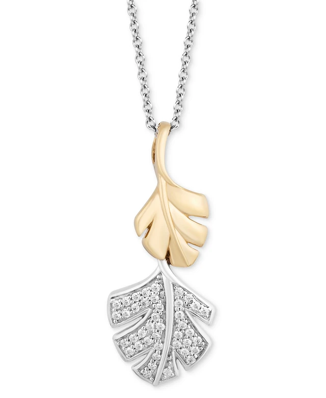 Diamond Moana Leaf Pendant Necklace (1/6 ct. t.w.) in Sterling Silver & 10k Gold