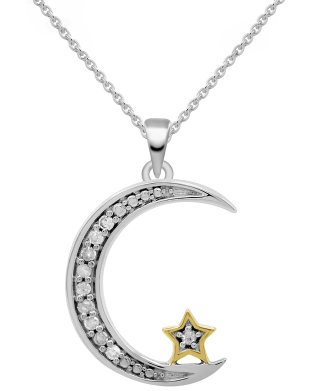 Diamond Moon & Star 18" Pendant Necklace (1/10 ct. t.w.) in Sterling Silver & 14k Gold-Plate