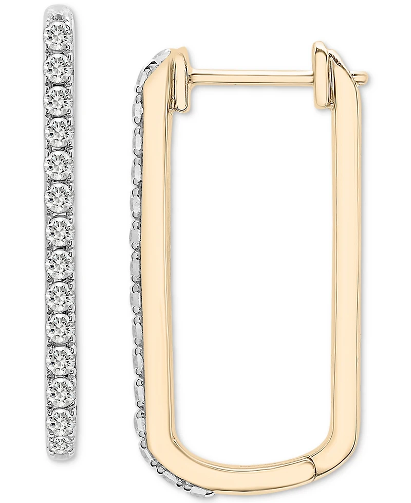 Diamond Open Rectangle Small Hoop Earrings (1/2 ct. t.w.) in 14k Yellow or White Gold, Created for Macy's in Ponce, PR