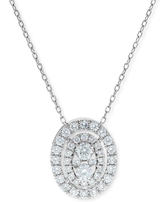 Diamond Oval Halo Cluster Pendant Necklace (5/8 ct. t.w.) in 14k White Gold, 16" + 2" extender