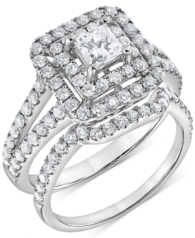 Diamond Princess Halo Bridal Set (2 ct. t.w.) in 18k White Gold
