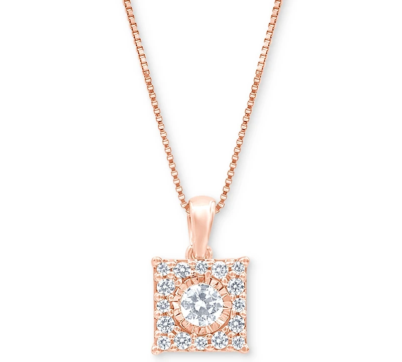 Diamond Square Halo 18" Pendant Necklace (1/3 ct. t.w.) in 14k White, Yellow or Rose Gold