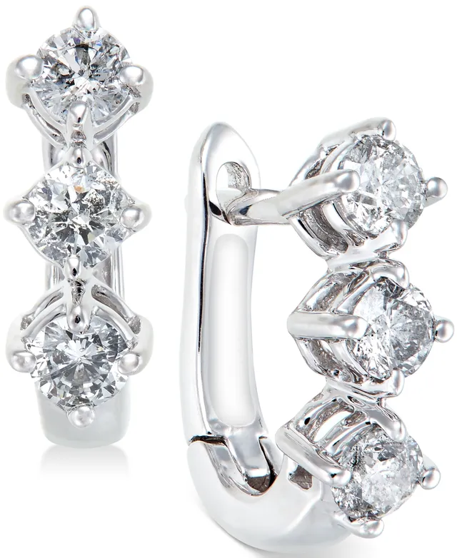 Diamond Three Stone Small Hoop Earrings (1-1/2 ct. t.w.) in 14k White Gold or 14k Yellow Gold