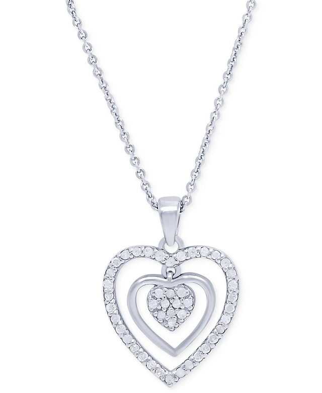 Diamond Heart-in-Heart 18" Pendant Necklace (1/10 ct. t.w.) in Sterling Silver