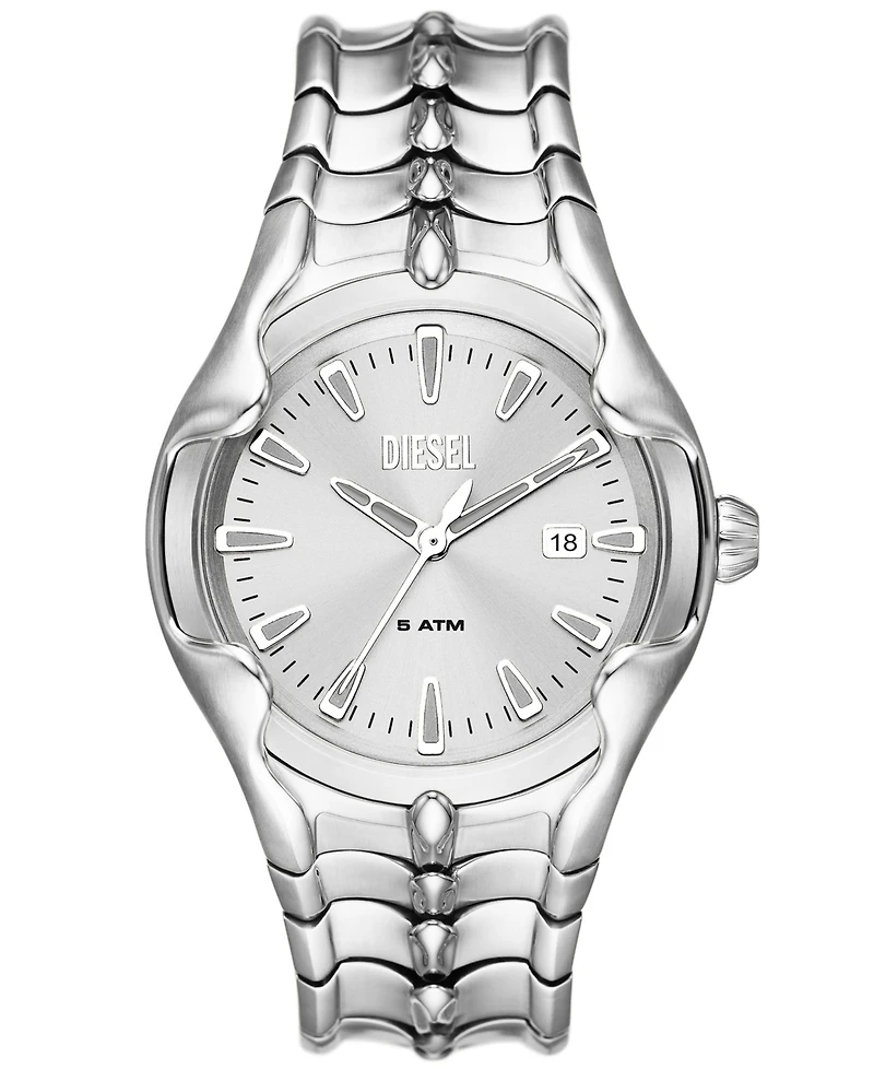 Diesel's 44mm Vert watch features a silver-tone sunray dial, three-hand date movement and stainless steel bracelet. Style #DZ2185