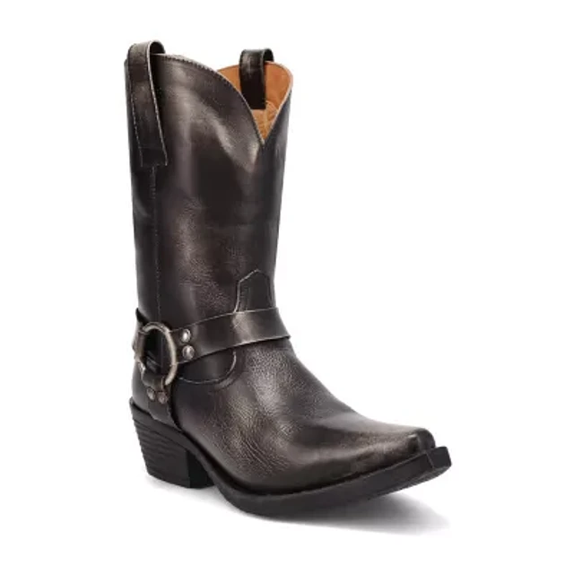 Dingo Womens Ride A Way Leather Stacked Heel Cowboy Boots