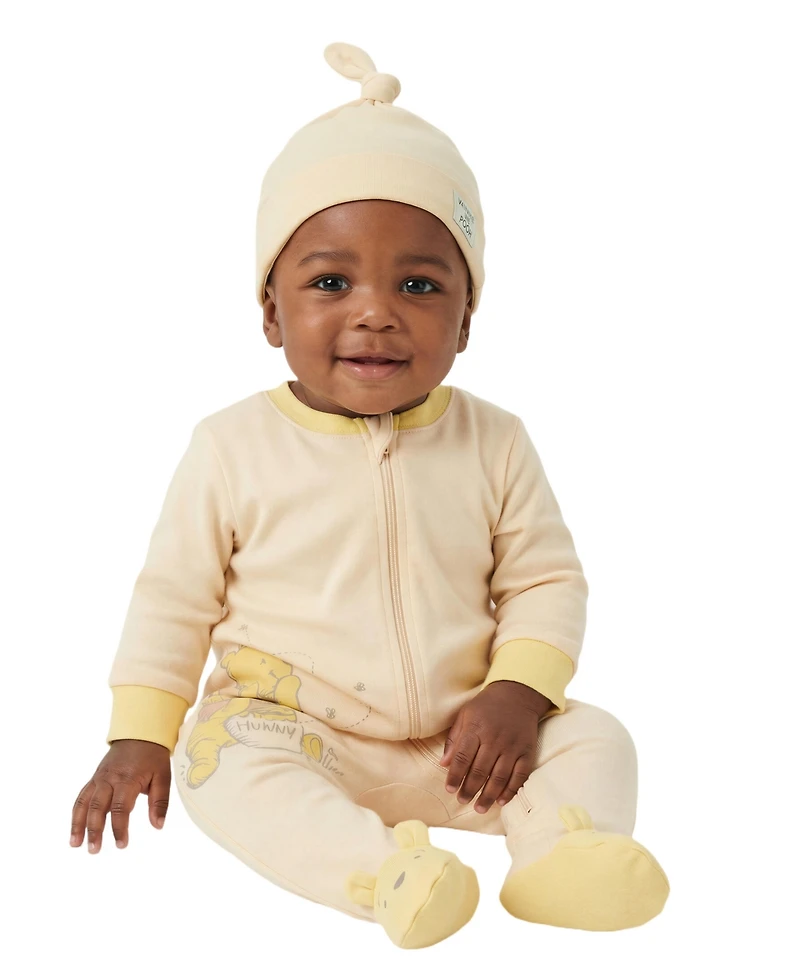 Wrap your little one in cozy comfort with this Disney set, a great choice for coordinating with other playful pieces. It features a delightful Winnie the Pooh footed coverall, while the matching hat adds an extra layer of warmth and adorable style.