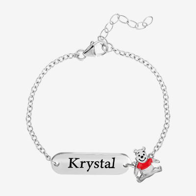 Disney Classics Girls Sterling Silver 5 Inch Hollow Link Winnie The Pooh Id Bracelet