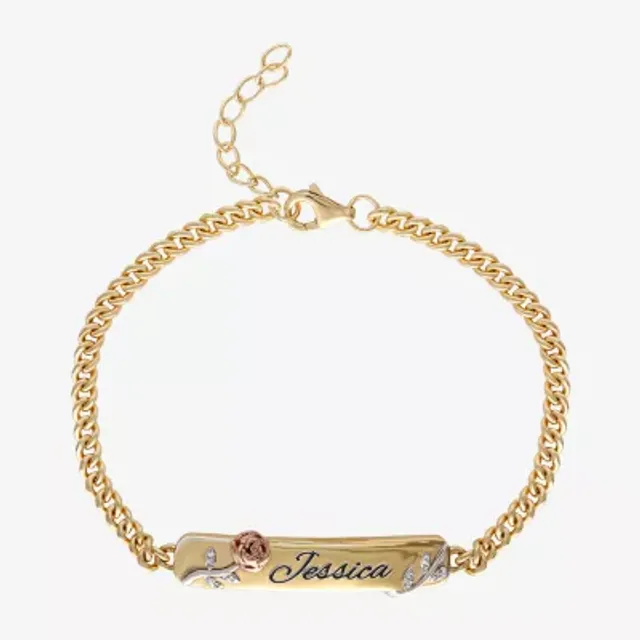 Disney Classics Girls 18K Gold Over Silver 6 Inch Semisolid Curb Beauty and the Beast Id Bracelet